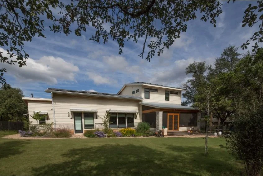 The owners came to Joe wanting to build a sustainable and energy-efficient home where they could enjoy their retirement with their family. They purchased a one-acre plus lot in the East Oak Hill neighborhood. The lot was located over the Edwards Aquifer recharge zone, limiting the total impervious cover to 5,000 square feet. Additional site requirements created a challenge that Joe was able to turn into opportunities. Joe was able to provide the owners with over 2,800 sf of open living space on the main level with views to the private entry courtyard & the xeriscape property.